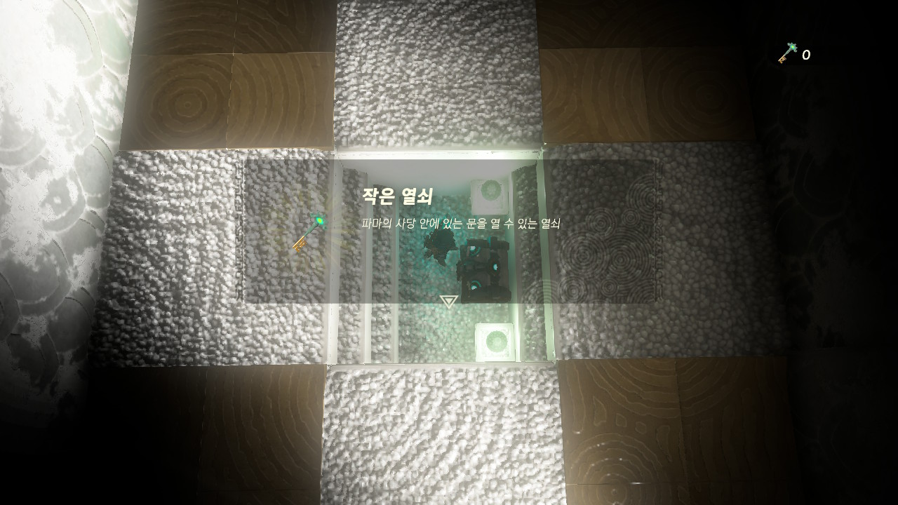 가운데 있는 돌을 울트라 핸드로 꺼내주시면 작은 열쇠를 획득하실 수 있습니다.