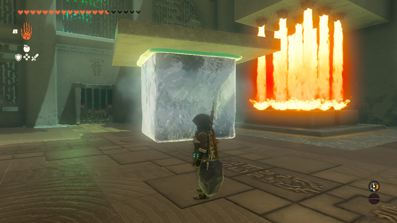 사당 내부에 얼음이 있는데, 사이즈가 커서 버튼 위에 안 올라갑니다.