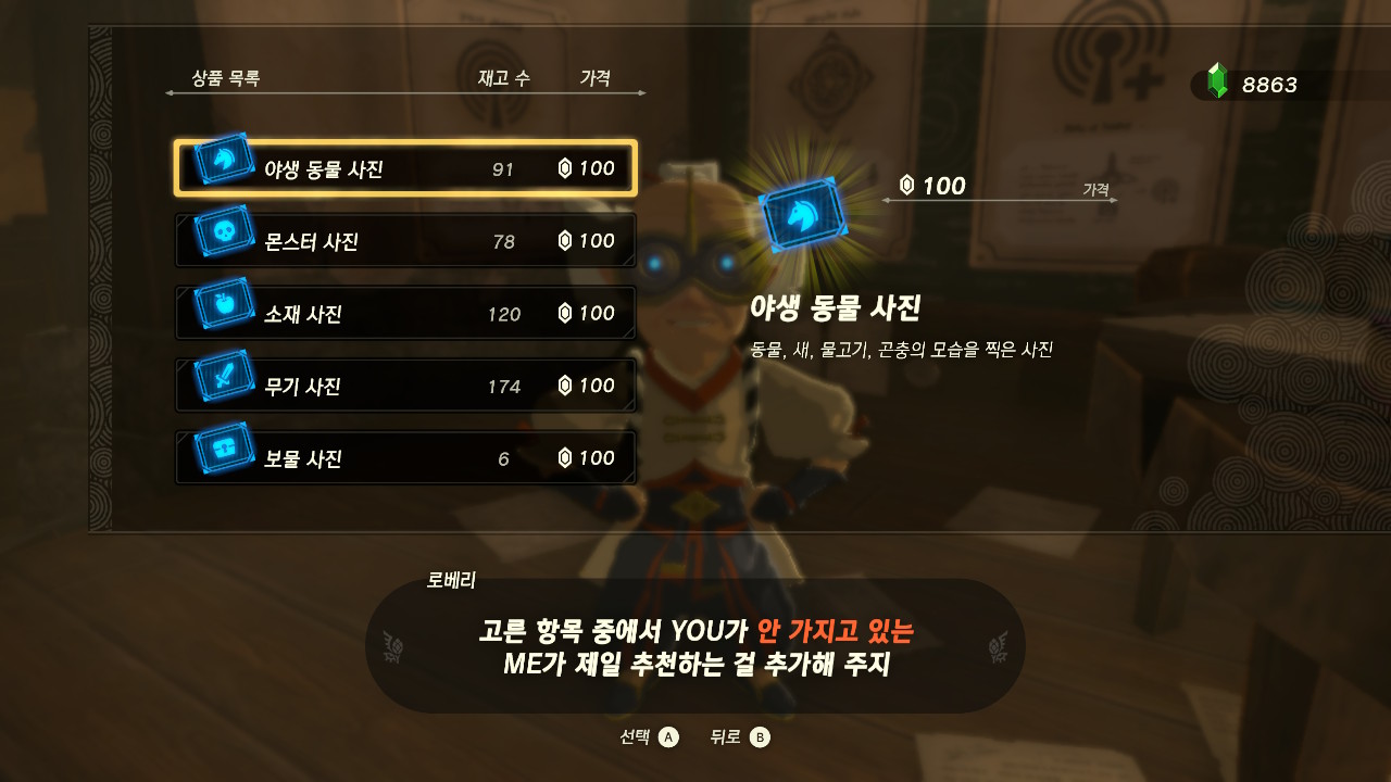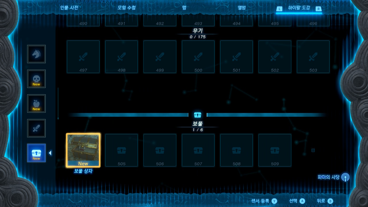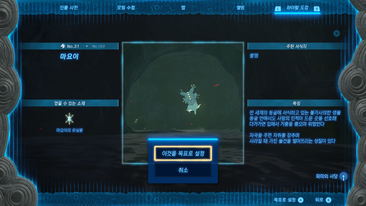 하이랄 도감에 들어가, 찾고싶은 물체를 클릭 후 목표로 설정해주시면 됩니다.