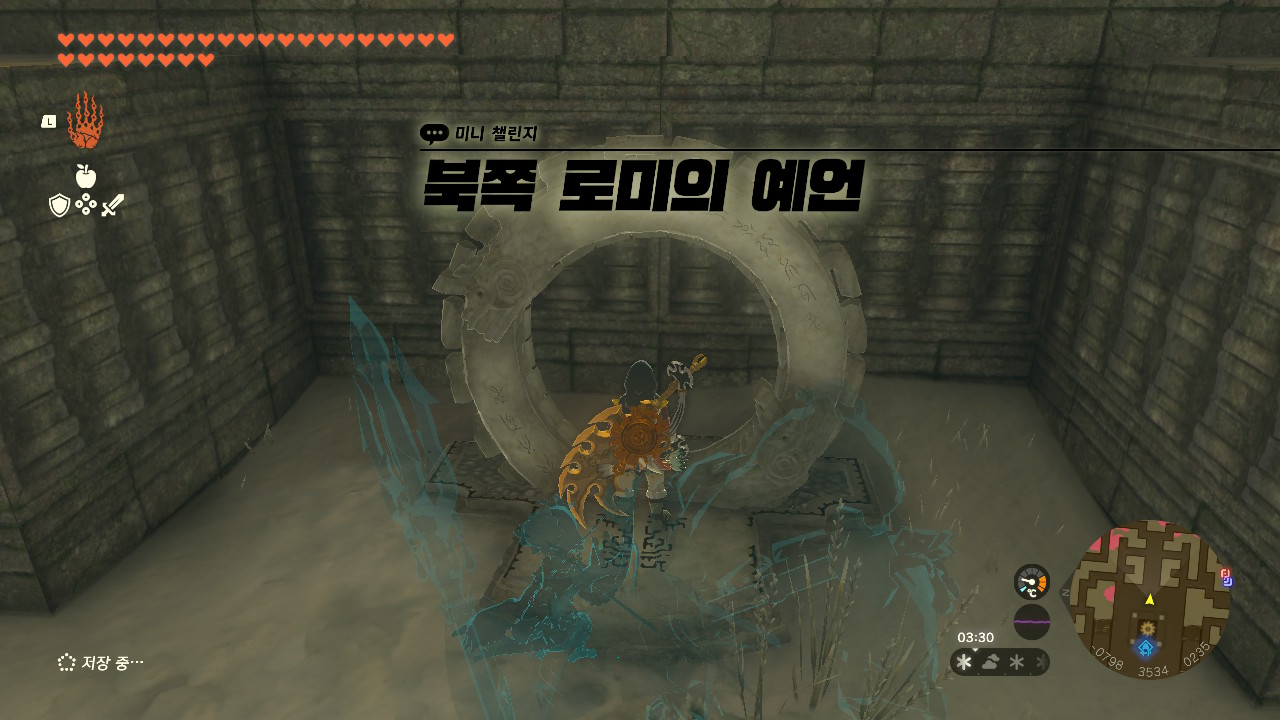 이후, 뒤쪽에 있는 장치를 가동시키면 미니챌린지 [북쪽 로미의 예언]이 활성화 됩니다.