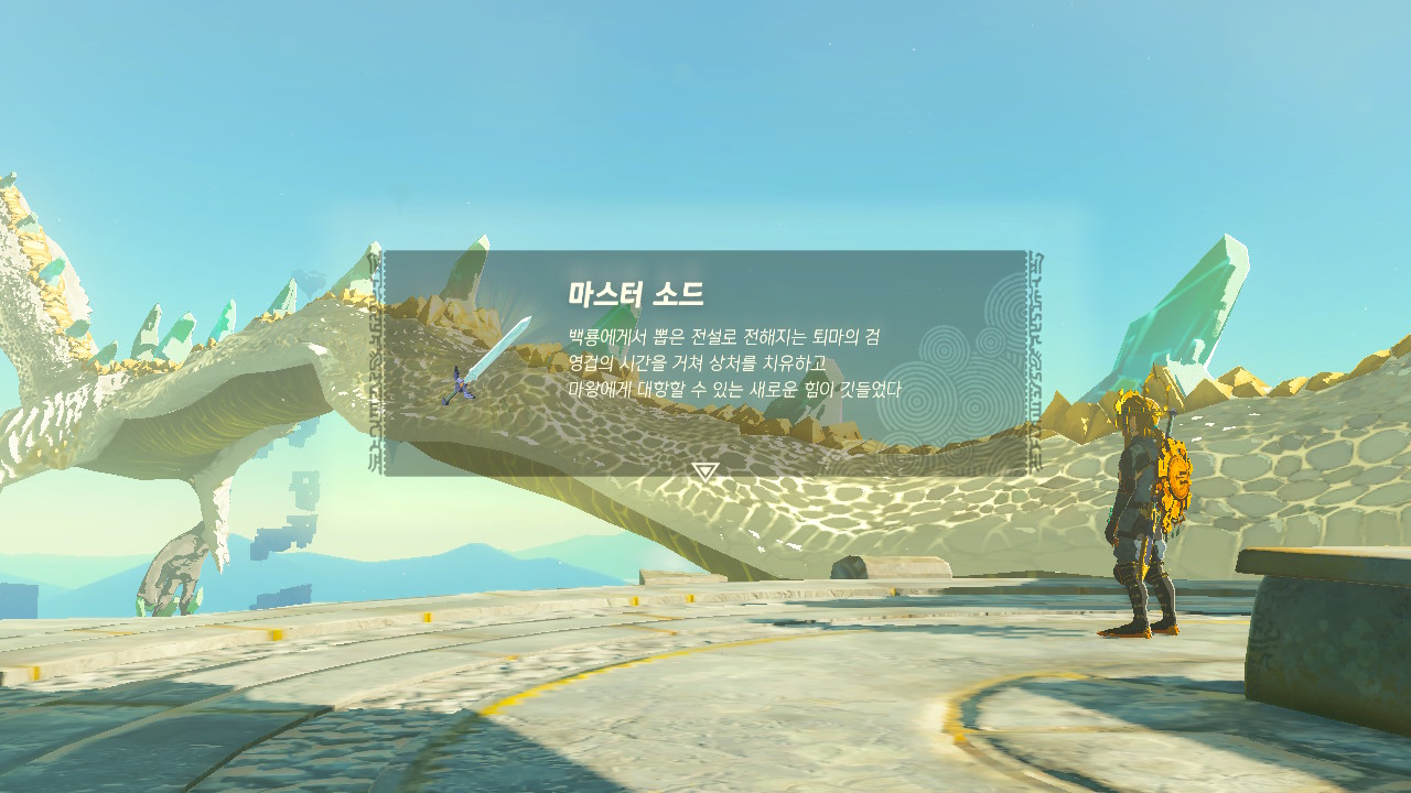 울리산 조망대로 이동하신 후, 백룡의 머리 위로 날아가셔서 마스터소드를 획득해주세요.