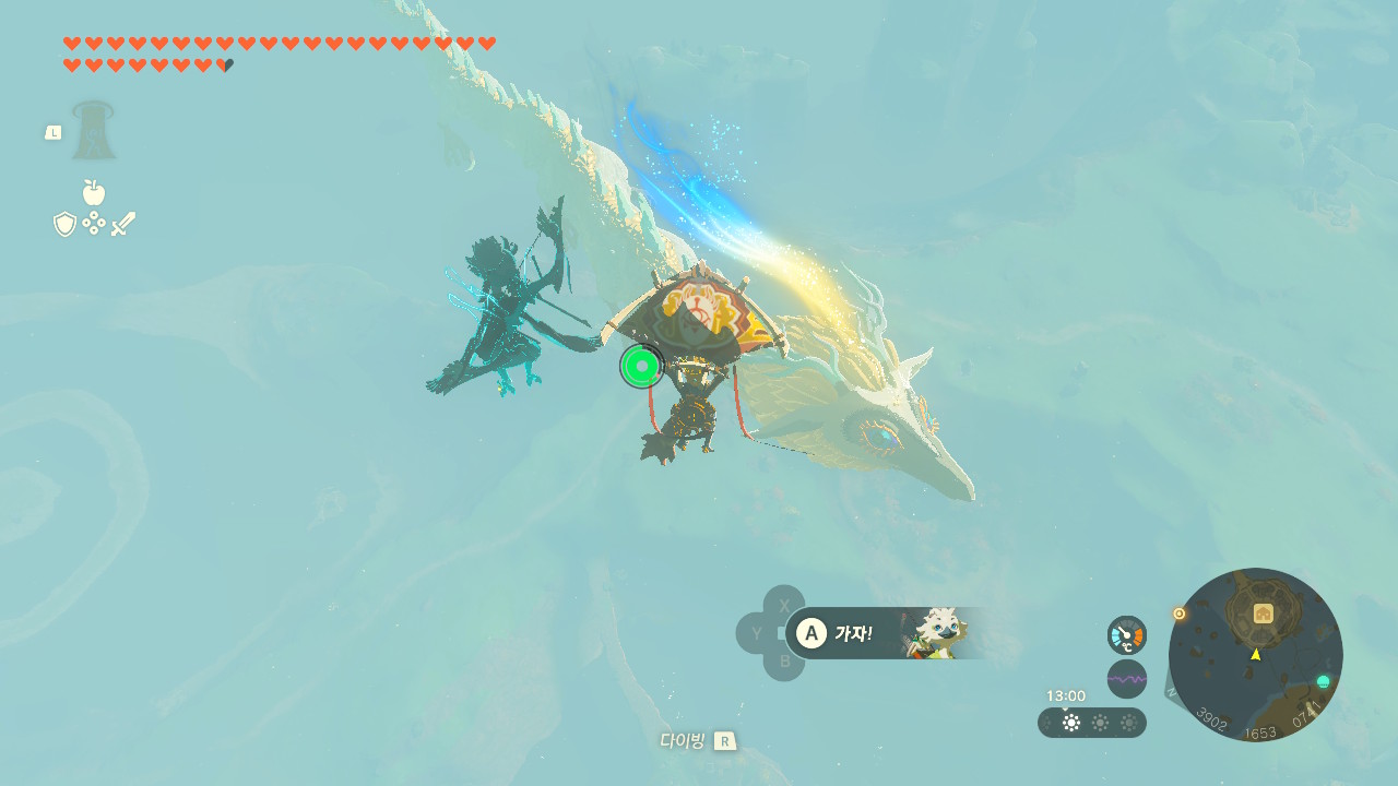 울리산 조망대로 이동하신 후, 백룡의 머리 위로 날아가셔서 마스터소드를 획득해주세요.