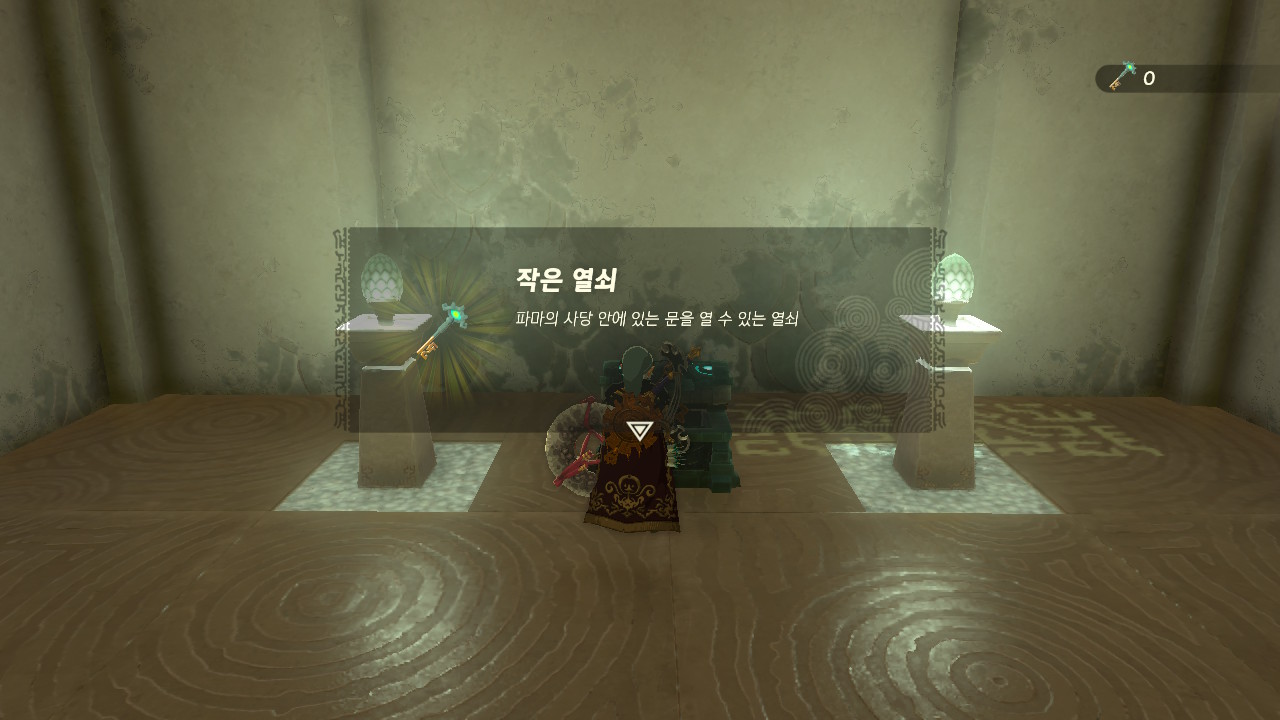 레이저 함정을 피해 앞으로 쭉 이동해주시면 보물상자가 있고, 그 안에 작은 열쇠가 있습니다.