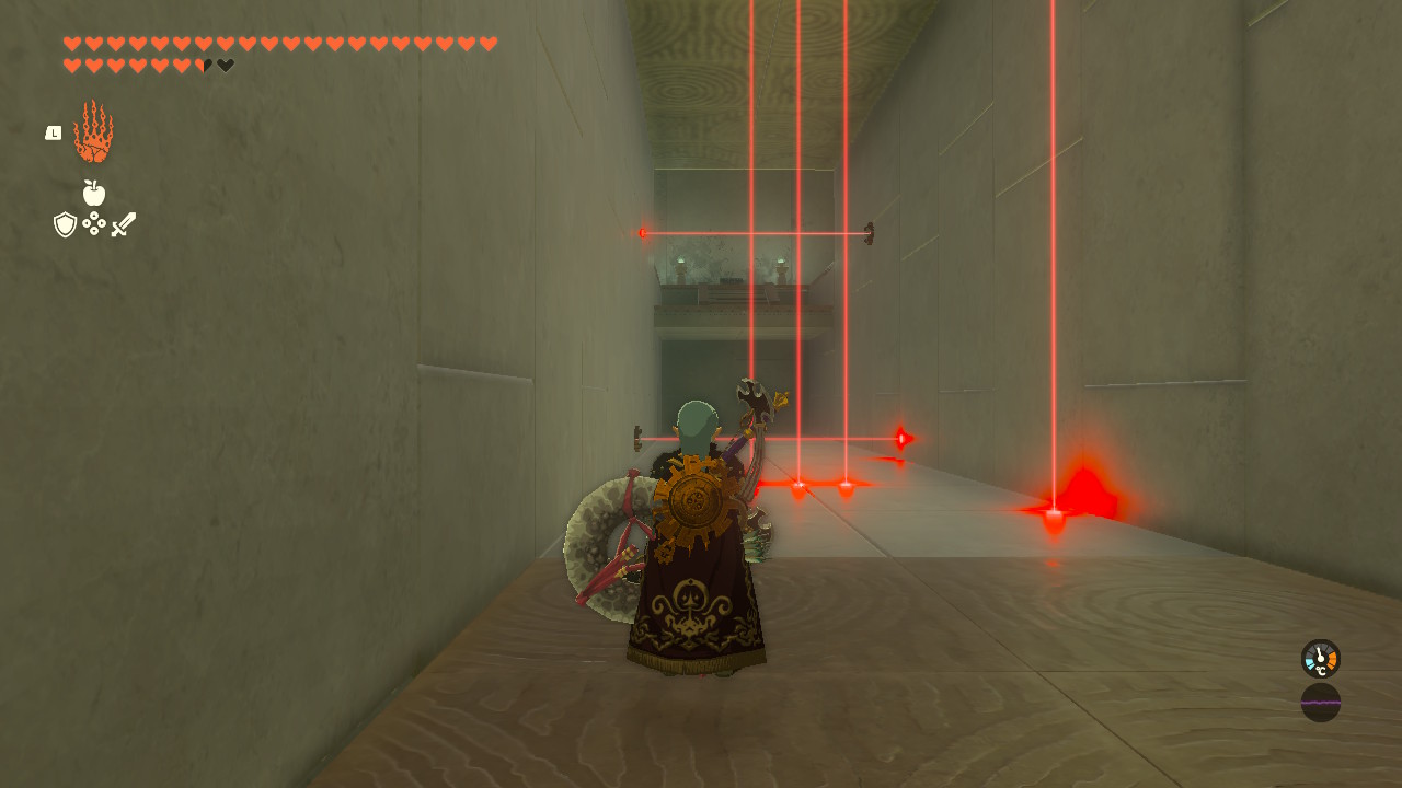 레이저 함정을 피해 앞으로 쭉 이동해주시면 보물상자가 있고, 그 안에 작은 열쇠가 있습니다.