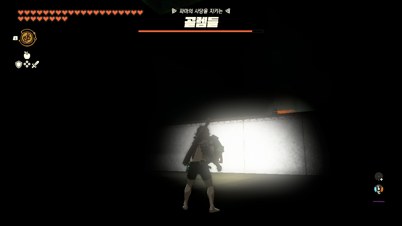 라이트 방패를 이용해 사당 내부를 밝히면서 골렘들을 해치워주시면 됩니다.