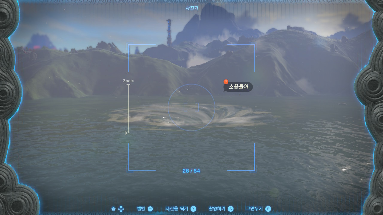 엔오마의 사당으로 이동하셔서, 하일리아 호에 있는 소용돌이를 카메라로 촬영해주세요.