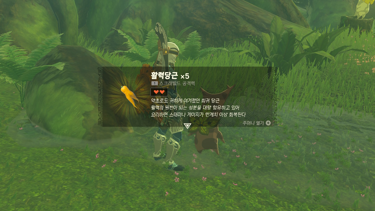 다시 코르그 숲으로 돌아가 카랏세에게 찍어온 사진을 보여주면 보상으로 활력당근 5개를 지급받고, 미니 챌린지가 완료됩니다.