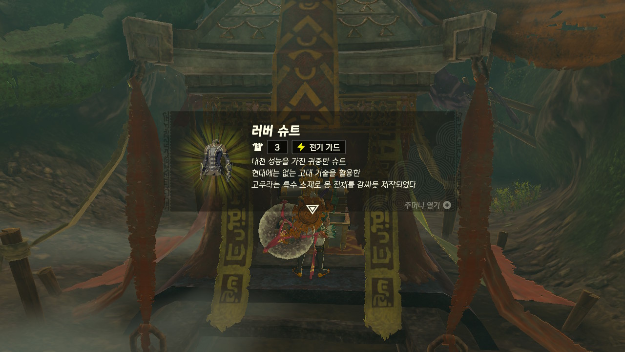 조아조아 옆에 있는 바위를 부셔주시면 그 안에 신사가 있습니다. 러버 슈트를 획득합니다.