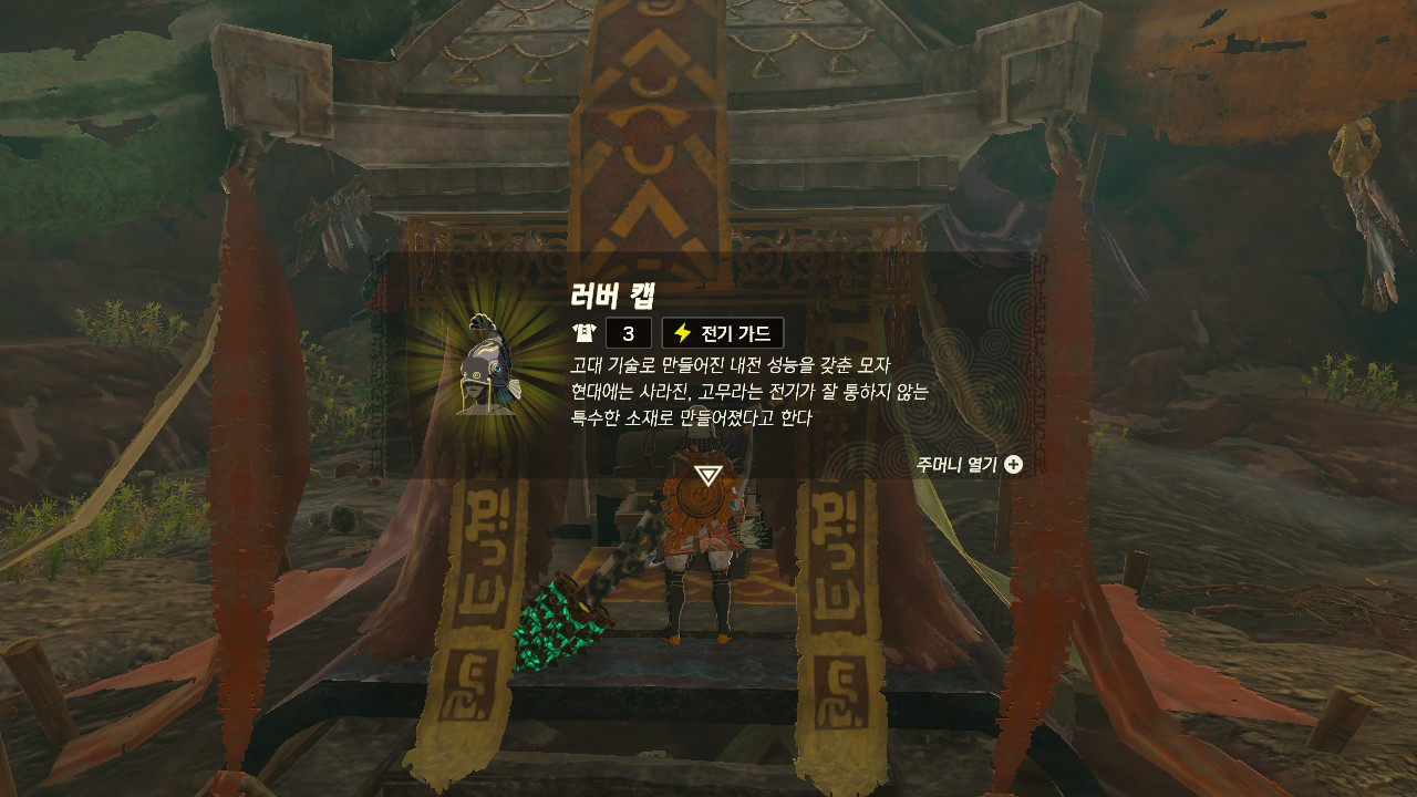 젤다의 전설 왕국의 눈물 전기 속성을 무효시키는 호뢰의 투구 얻는 법 목차 0. 사전 준비 1. 이가단의 아지트로 이동 2. 이가단의 원단, 토둔서, 호뢰의 투구 얻기 겔드족의 보물로 전기를 튕겨내