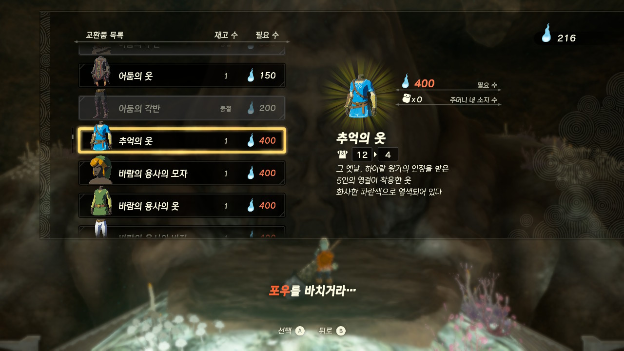 7개의 마인상을 모두 해금하면 전작 야숨의 숨결에서 5영걸이 입었었던 추억의 옷을 교환할 수 있습니다.