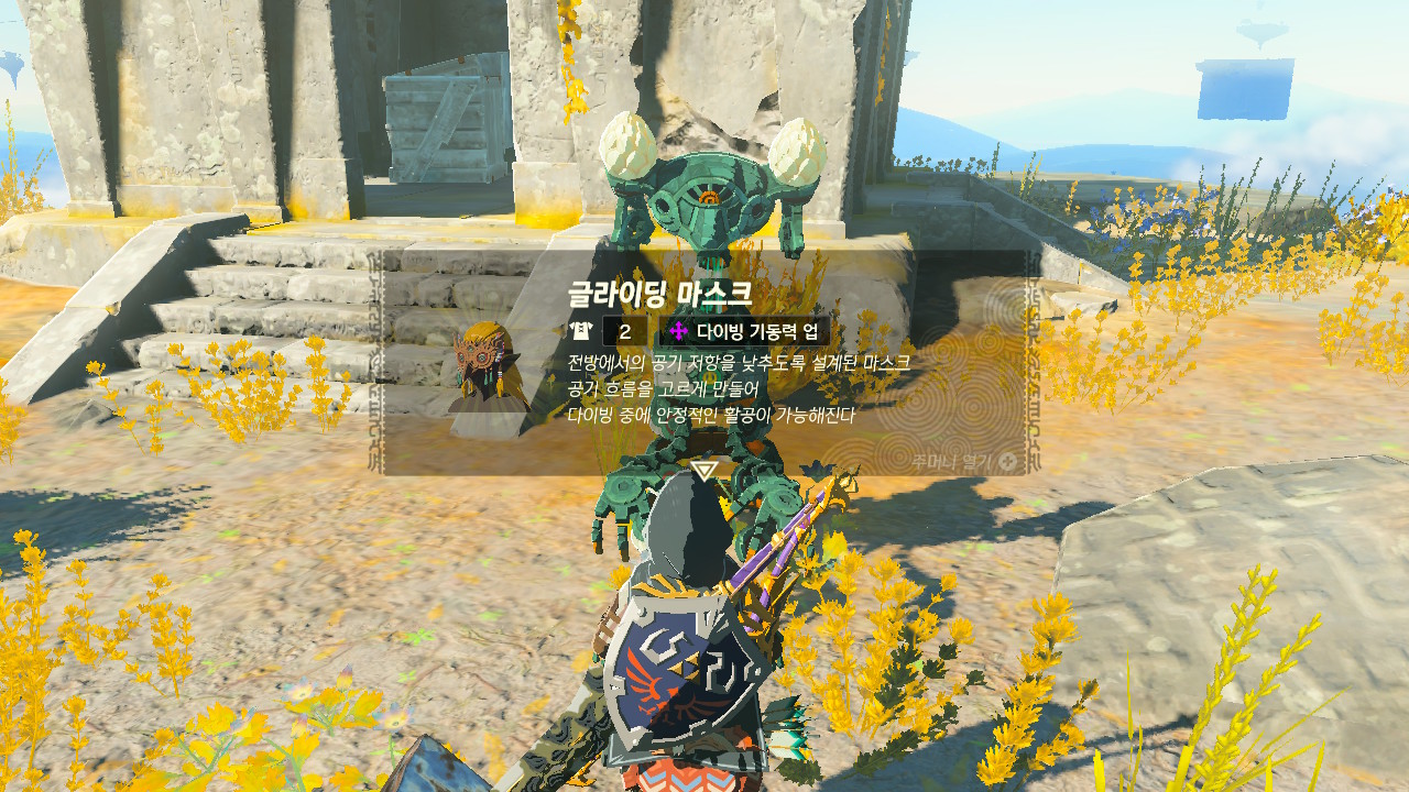 이후 섬에 있는 골렘에게서 낙하 의식을 통해 글라이딩 마스크를 획득할 수 있습니다.