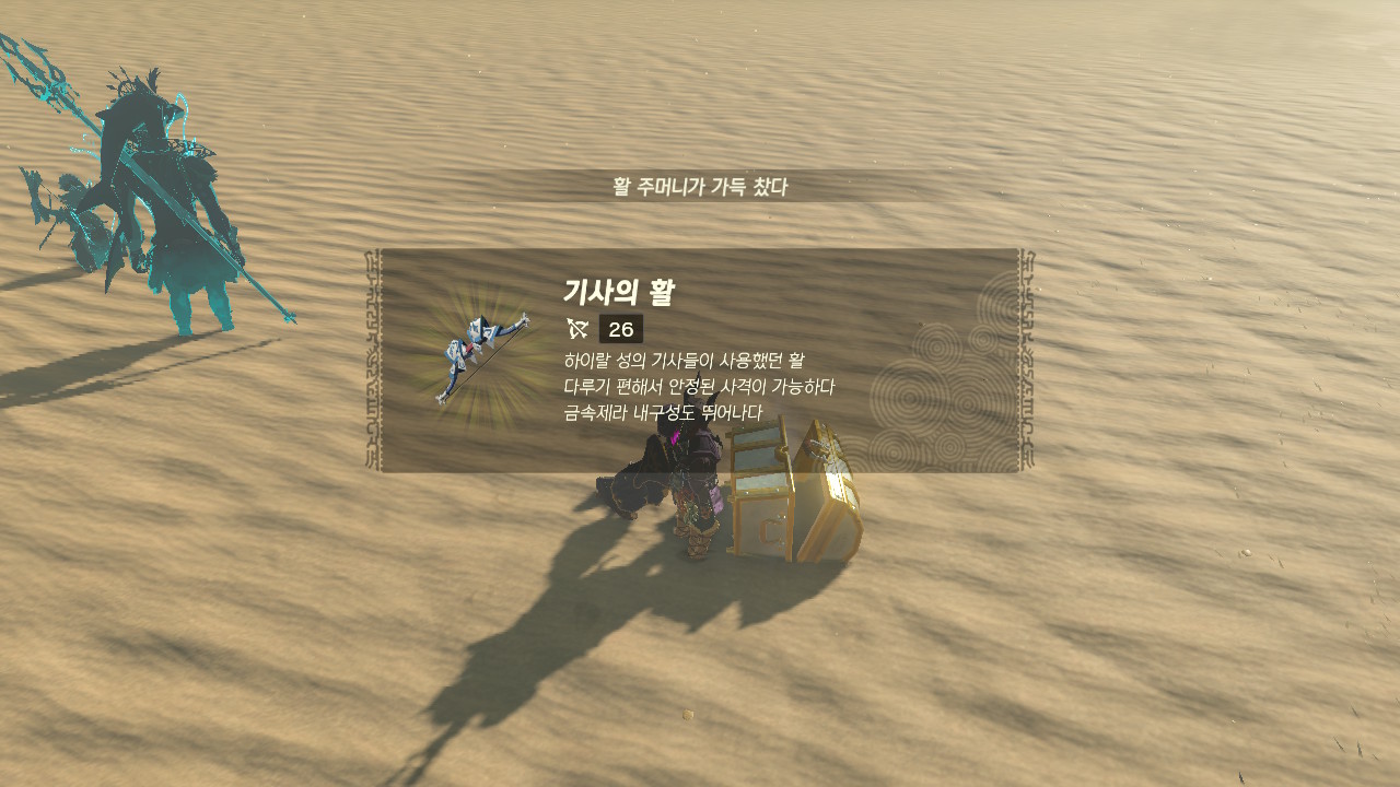 추가적으로 보물상자도 나왔습니다. 저는 기사의 활을 획득했습니다.