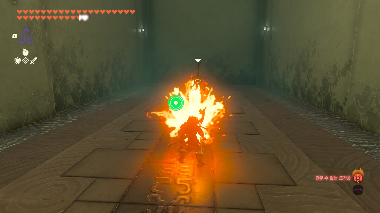 마찬가지로 골렘을 잡아 석판 방패를 획득해주시고, 방패로 화염을 막으면서 지나가시면 됩니다.