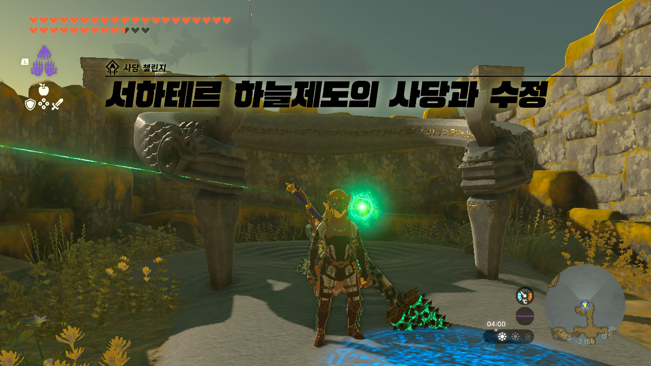 사당을 조사해 사당 챌린지 [서하테르 하늘제도의 사당과 수정]을 받아주세요. 빛줄기를 따라 옆에 있는 섬으로 이동해야합니다.