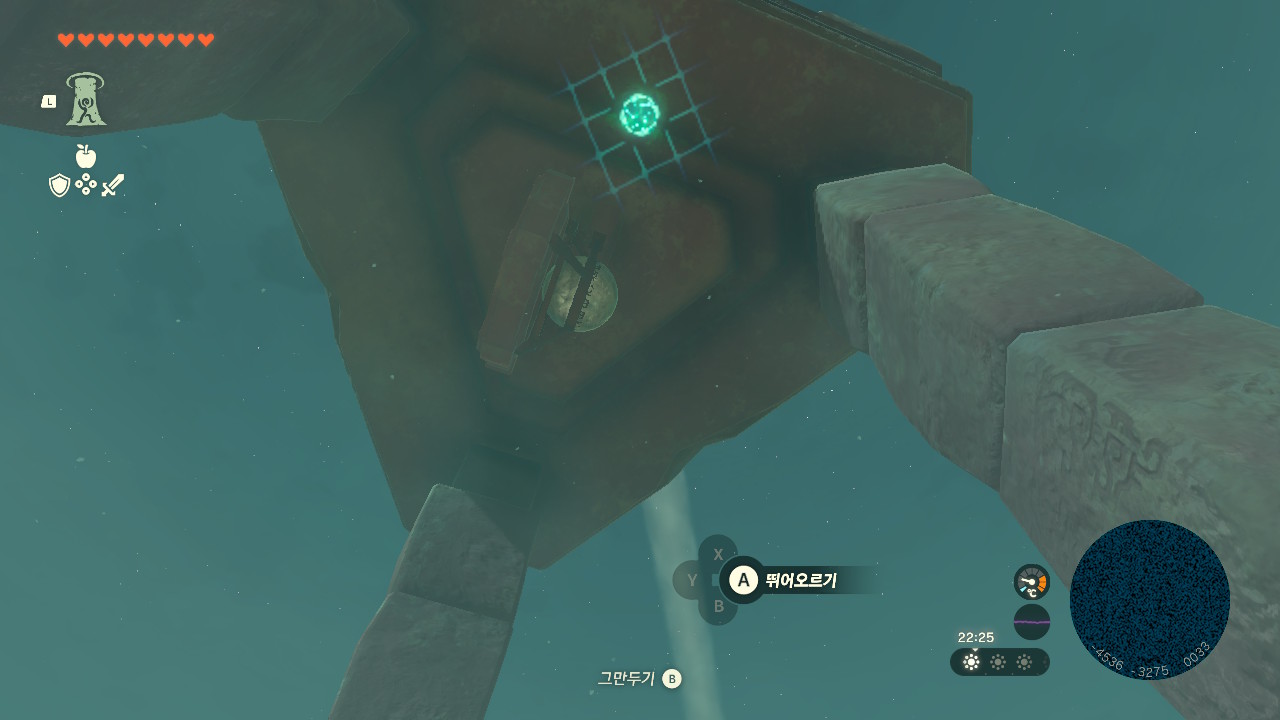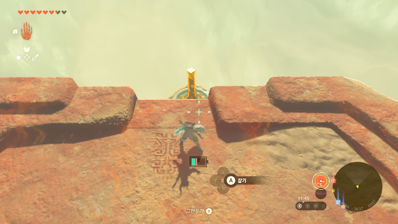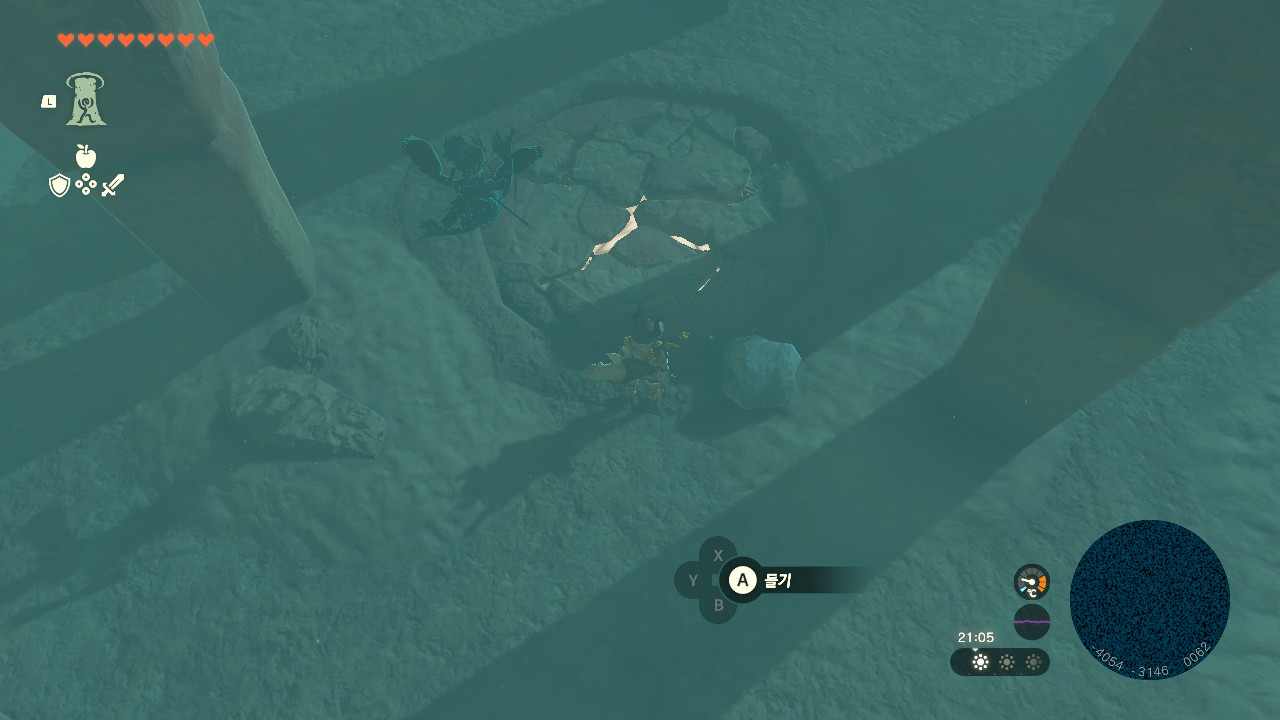 점프 후 공격 (X키→Y키) 을 사용하여 바위 바닥을 부셔줍니다.