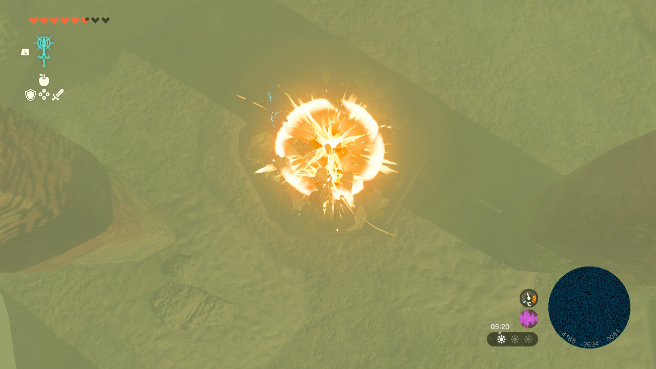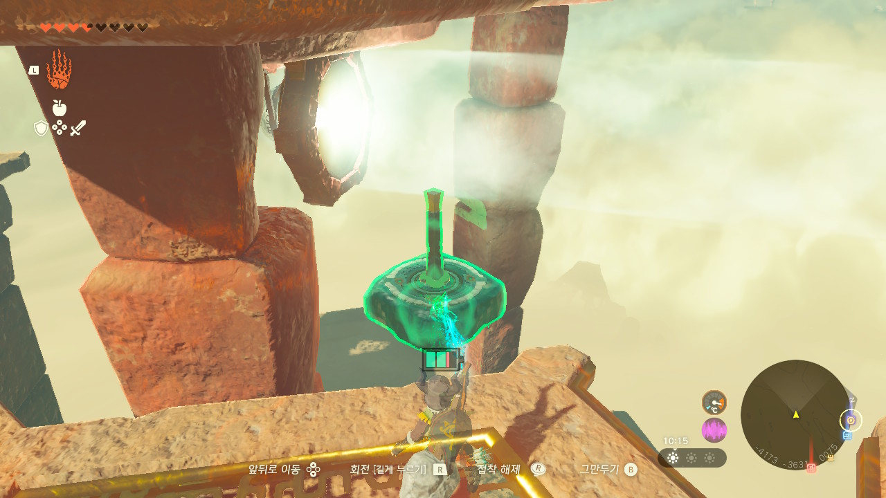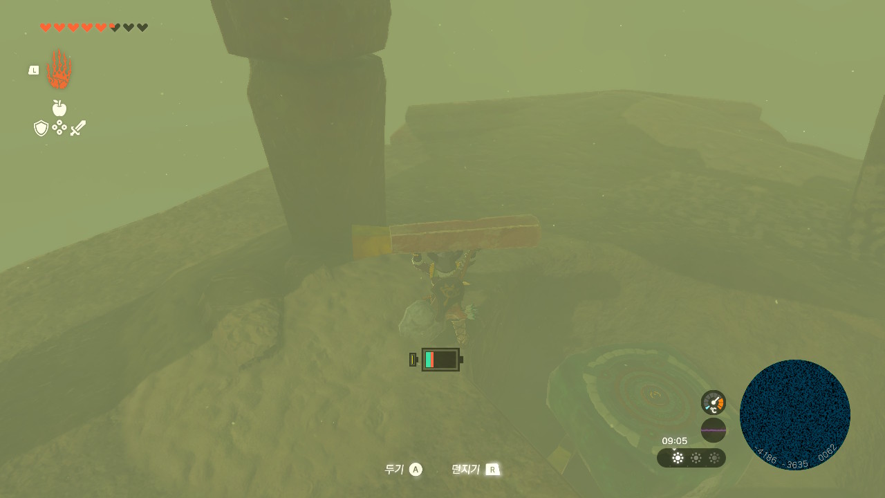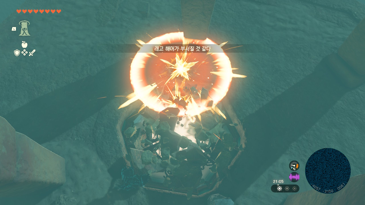 점프 후 공격 (X키→Y키) 을 사용하여 바위 바닥을 부셔줍니다.