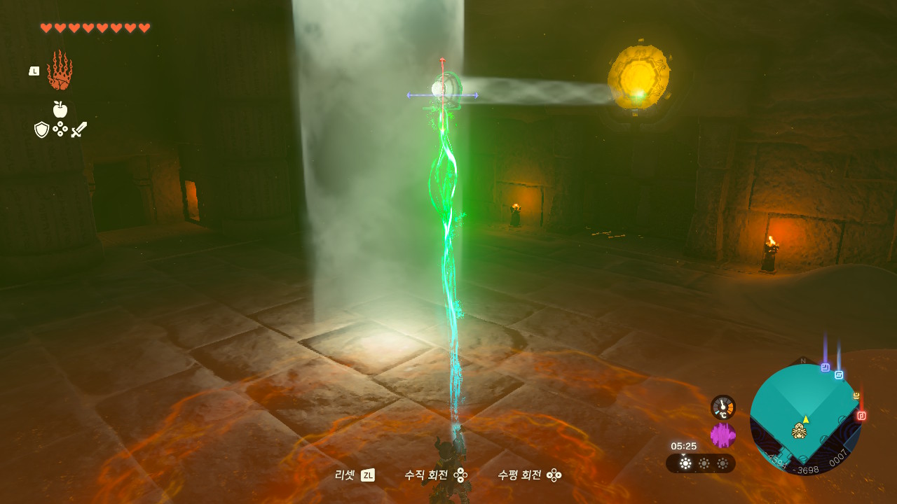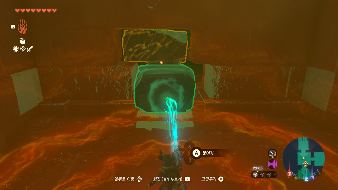 가로막고 있는 돌은 울트라 핸드로 치워주고, 내려오는 화염구는 리버레코로 해결해줍니다.