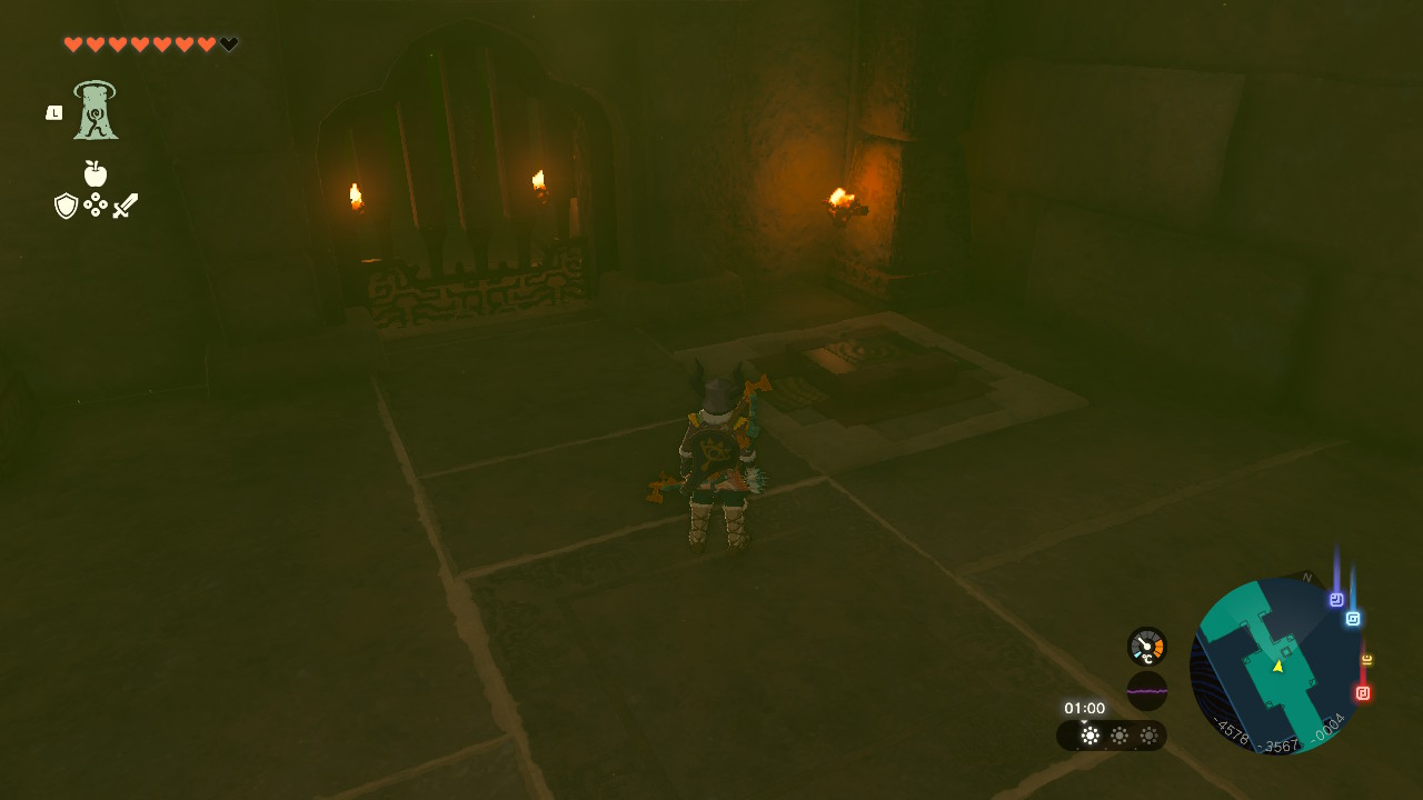 신전 내부 정가운데 바닥에 버튼이 있습니다. 버튼을 밟으면 나아갈 수 있게 문이 열립니다.