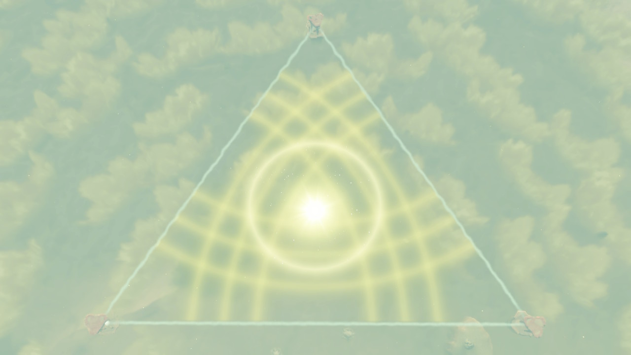 빛이 삼각을 그리자 가운데에 번개의 돌이 나타났습니다. 빛의 삼각 가운데로 이동해줍니다.