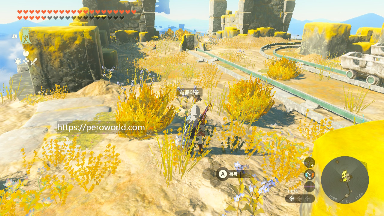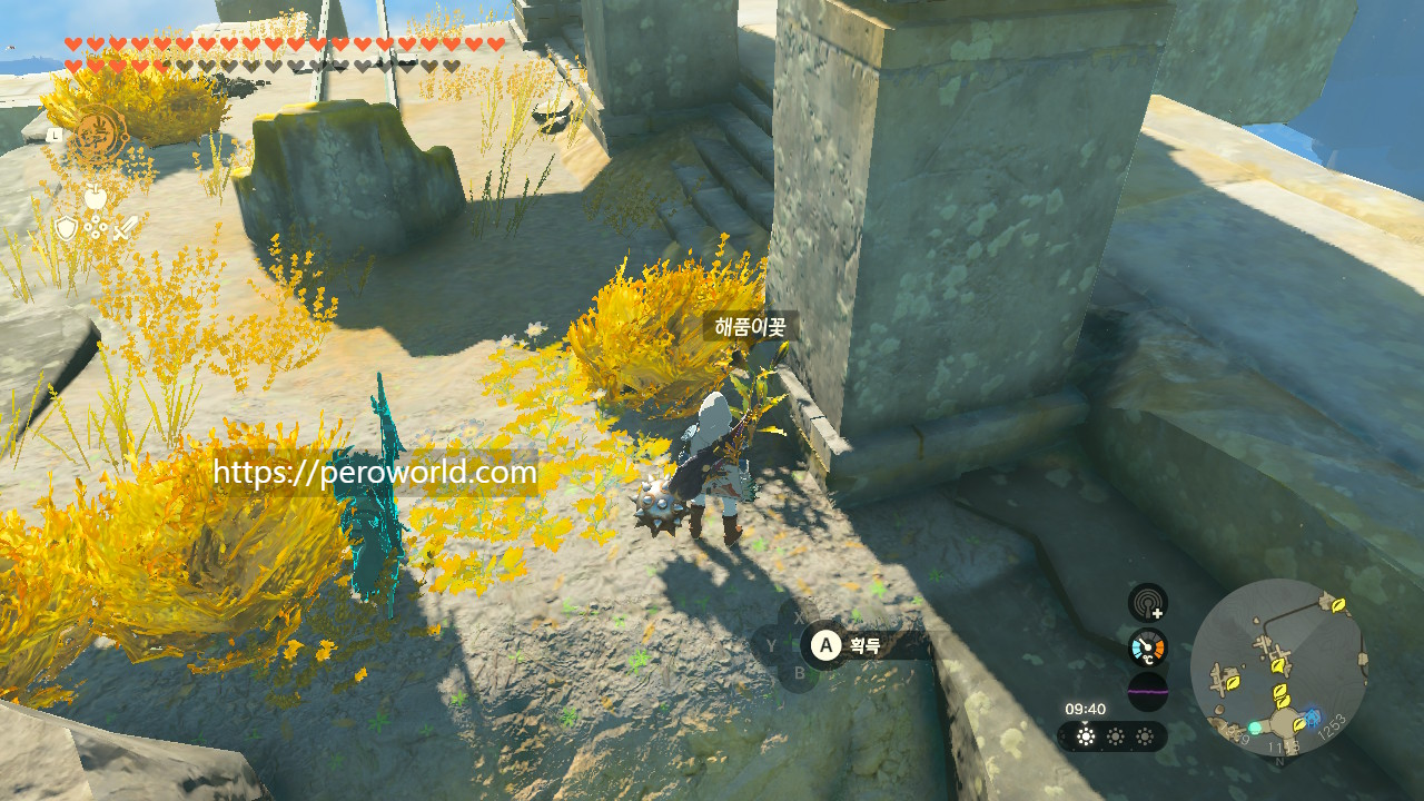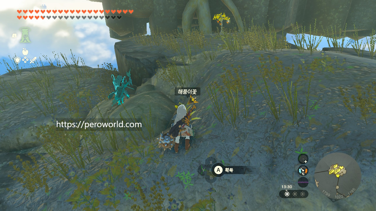 지상에는 중앙 하이랄, 하이랄 평원에서 해품이꽃을 파밍하실 수 있습니다. 그러나 아무래도 하늘섬에 많이 있는 소재기 때문에 지상에서 파밍하면 효율이 많이 떨어지기는 합니다.