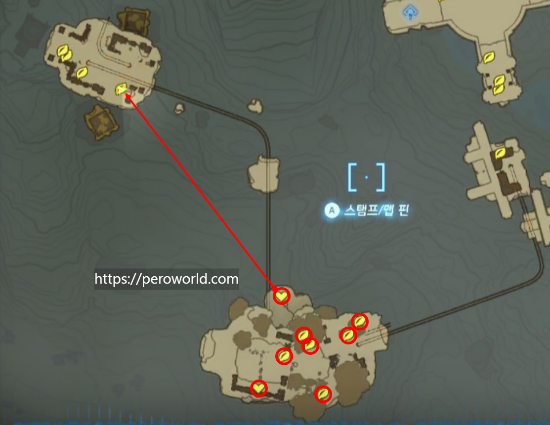 세 번째 구역에서는 해품이꽃 8개를 획득하실 수 있습니다. 하트 스탬프로 표시한 곳은 섬 지하에 위치해있다는 의미입니다. 참고로 지하로 내려가 가운데에서 트레루프할 경우 현자의 유지도 획득하실 수 있습니다.