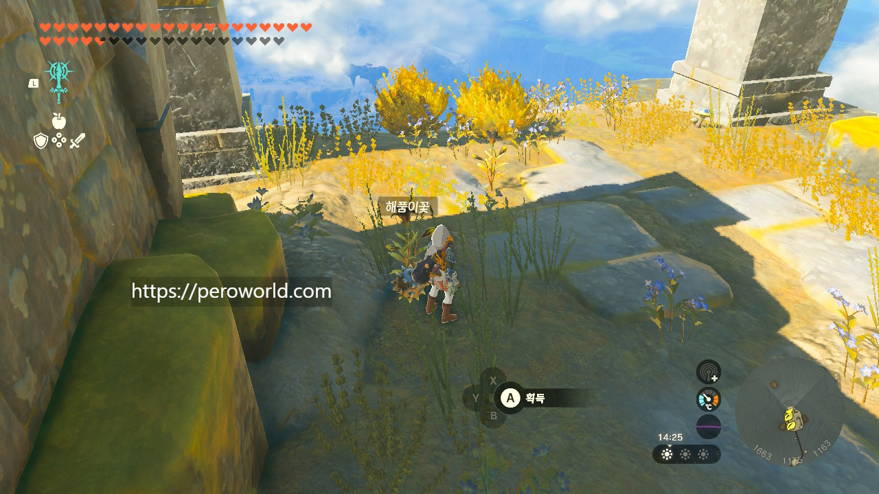 지상에는 중앙 하이랄, 하이랄 평원에서 해품이꽃을 파밍하실 수 있습니다. 그러나 아무래도 하늘섬에 많이 있는 소재기 때문에 지상에서 파밍하면 효율이 많이 떨어지기는 합니다.