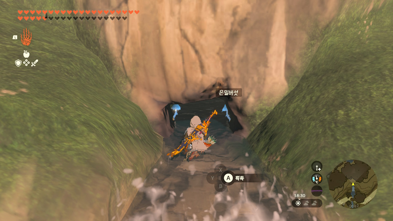 채즐이 알려준 폭포의 꼭대기로 올라오시면 그 틈새에 카카리코 마을의 동굴이 있습니다.