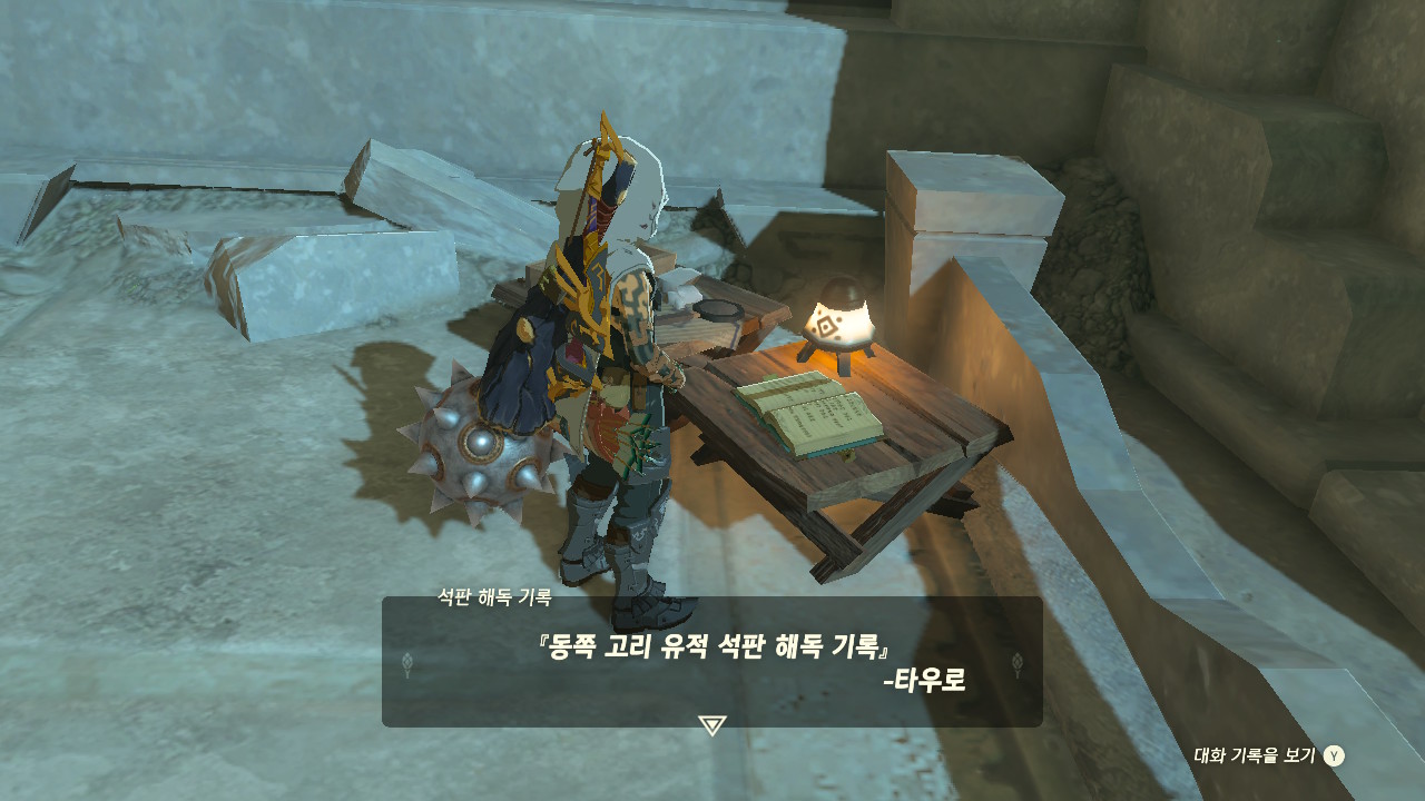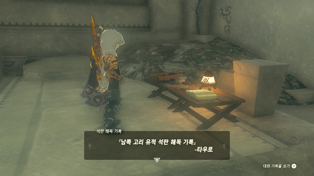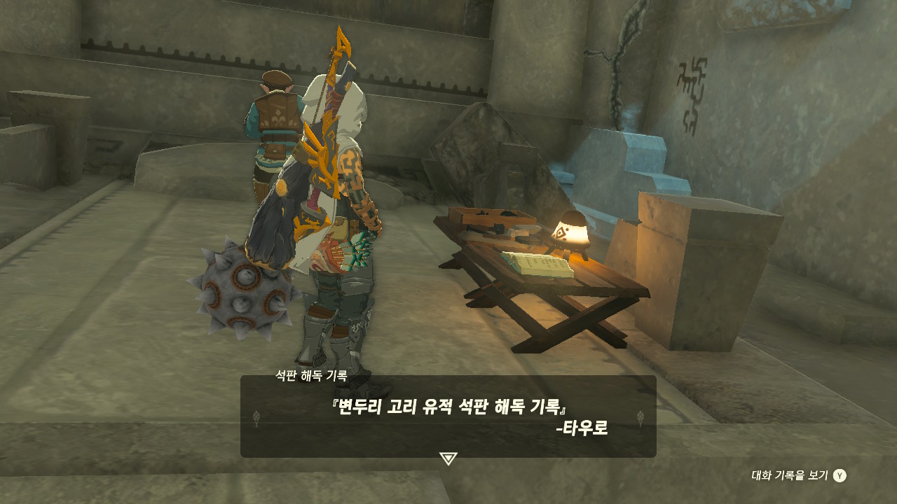 이후 유적 안쪽으로 들어가 석판 앞에 있는 타우로 일지를 읽어주세요