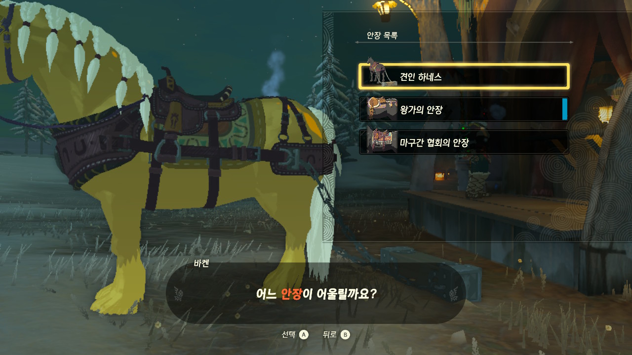 중앙 하이랄 북동쪽에 위치한 숲의 마구간으로 이동해 펜에게 말을 걸어줍니다.