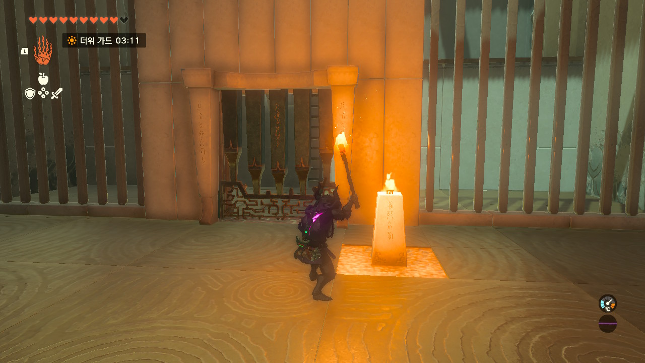 3개의 돌출구에 모두 불 화살을 맞춰주세요. 그럼 문이 열립니다.