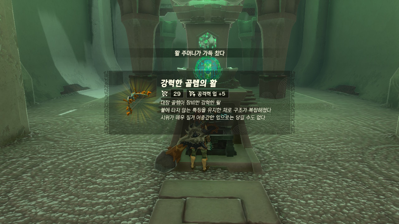 활 시위를 당기고 골렘 머리에 조준하여 꿰뚫어주시면 끝입니다.