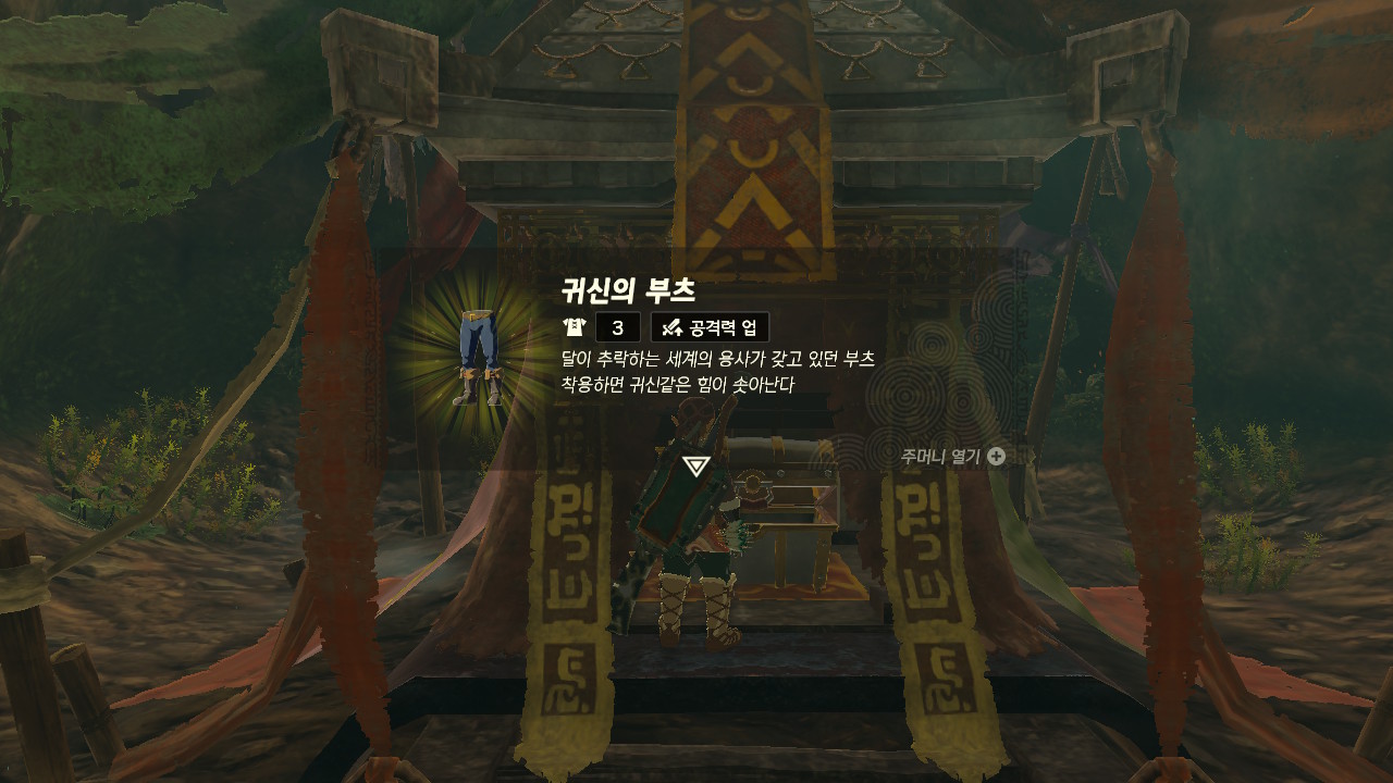 그쪽으로 이동해 덩굴을 잘라주면 귀신의 부츠를 얻을 수 있습니다.