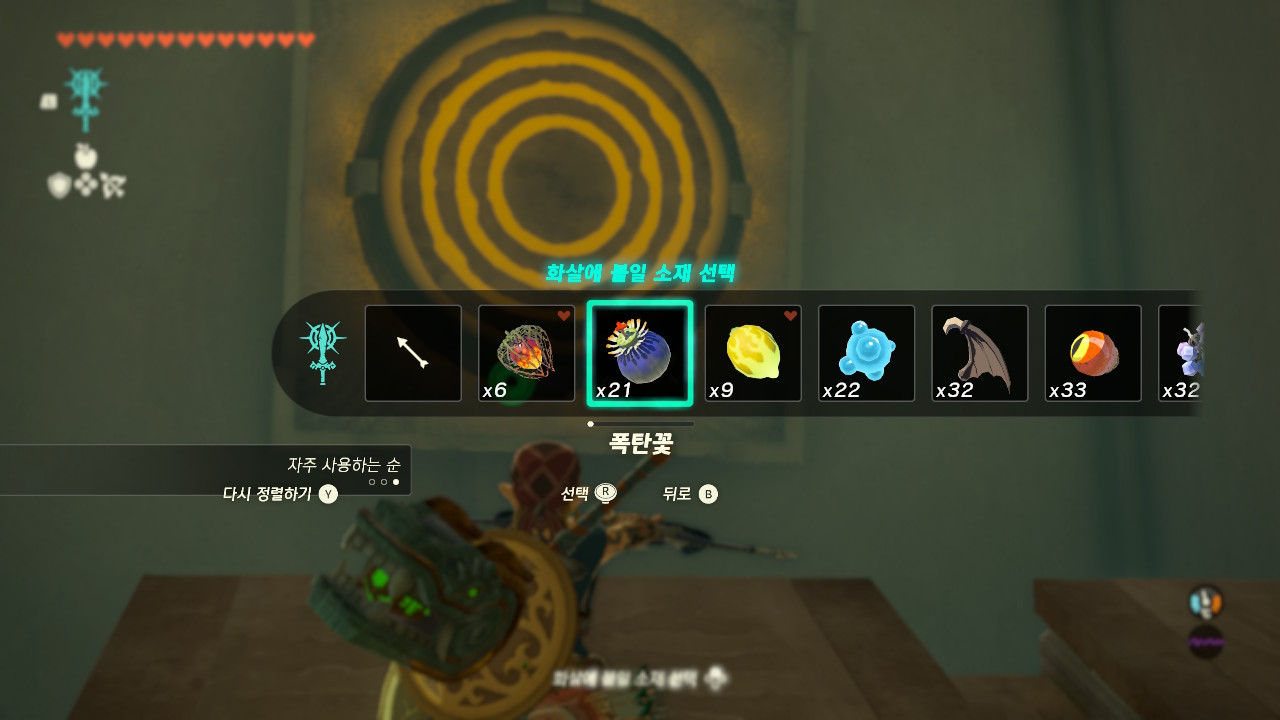 활에 폭탄꽃을 달아서 과녁에 맞춰주시면 빠르게 풀 수 있습니다.