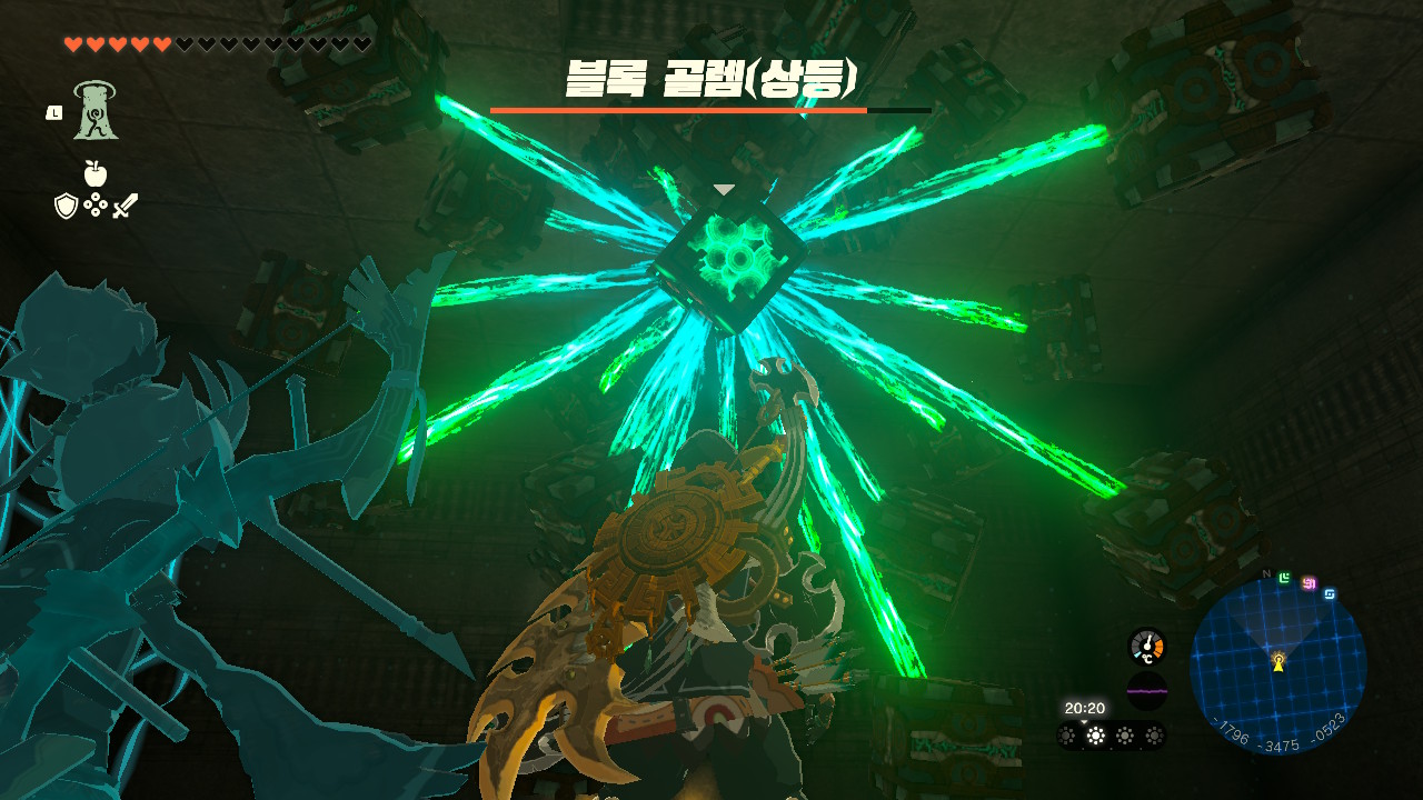 블록 골렘은 빛나는 돌이 핵심입니다. 빛나는 돌을 무기로 때려주시면 해치울 수 있습니다.