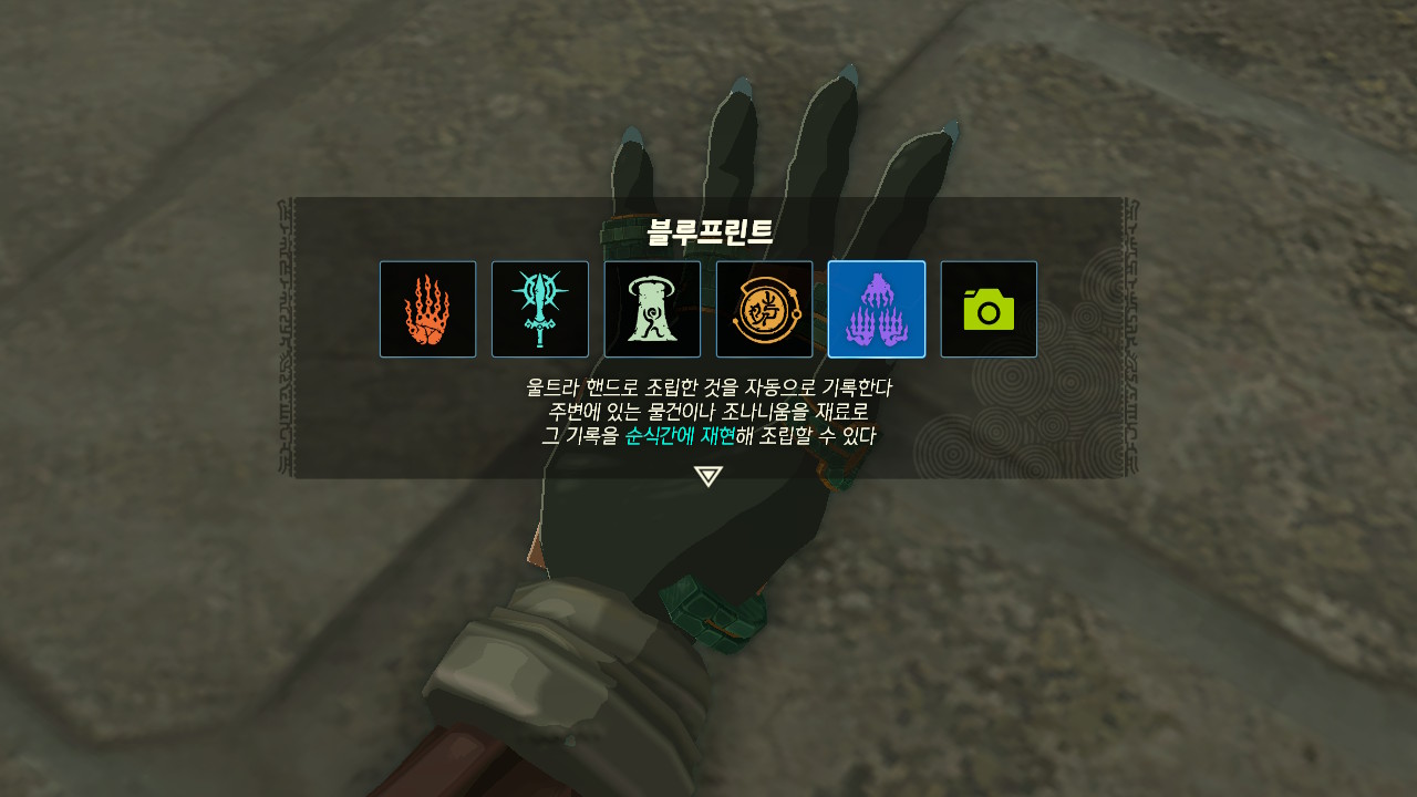 블루프린트 기능은 울트라 핸드로 조립한 것을 자동으로 기록해, 똑같이 재연하는 기능입니다.