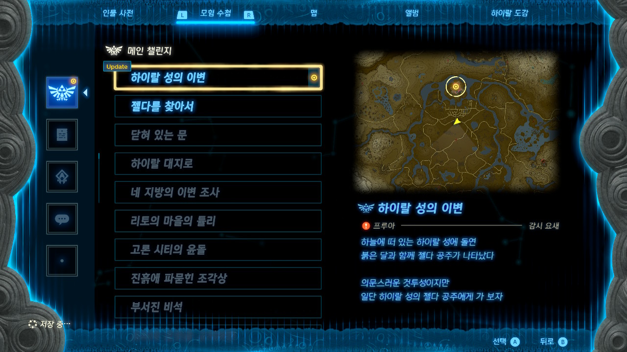 하이랄 성에 돌연 붉은 달과 젤다 공주가 나타났다고 합니다. 하이랄 성으로 이동해 공주를 찾아야 합니다.