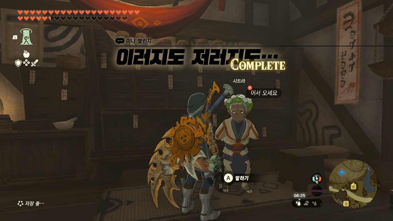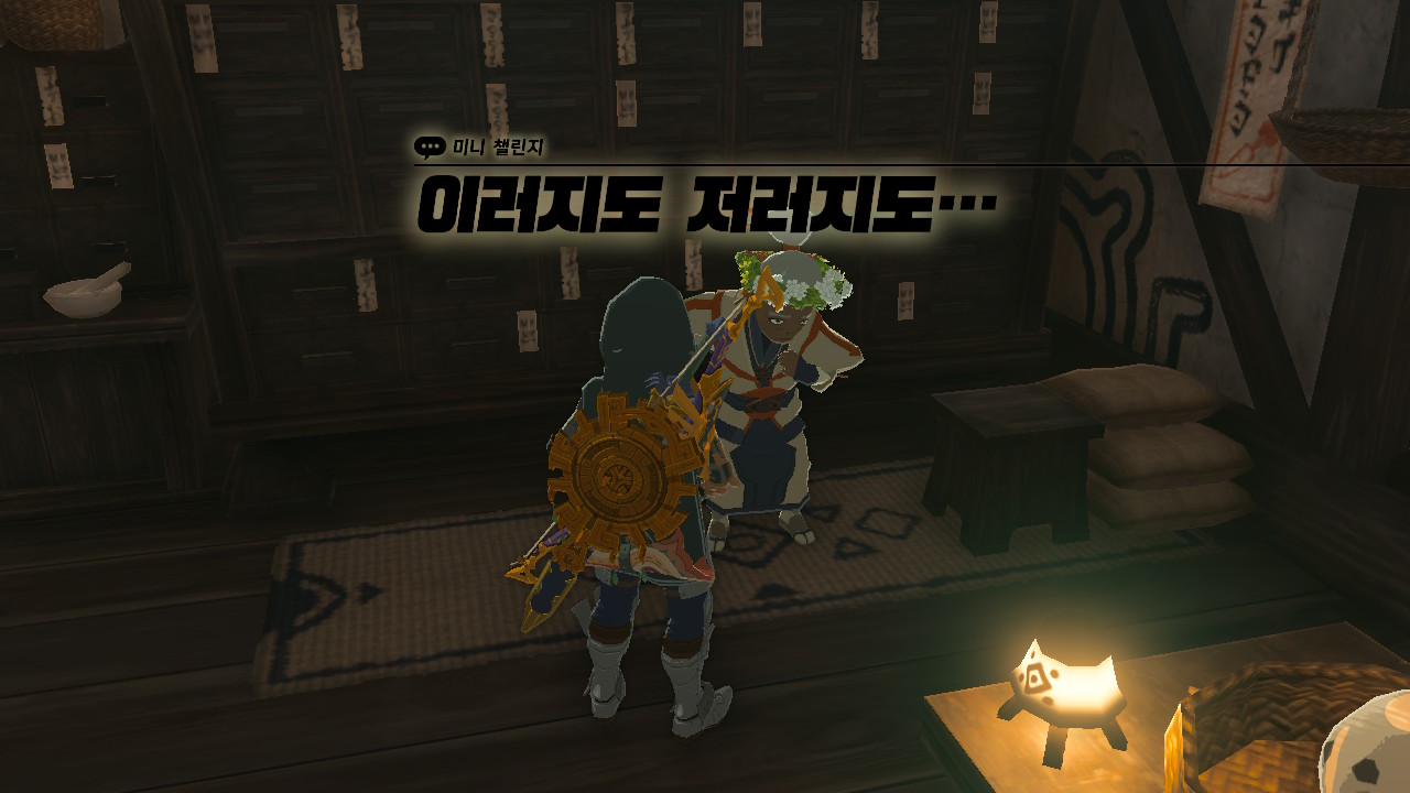 젤다의 전설 왕국의 눈물 미니 챌린지 - 꼬꼬의 이정표 챌린지 발생장소 NPC 카카리코 마을 만물상 시트라 1. 시트라에게 챌린지 받기 [꼬꼬의 이정표]는 선행 챌린지인 [이러지도 저러지도]를 클